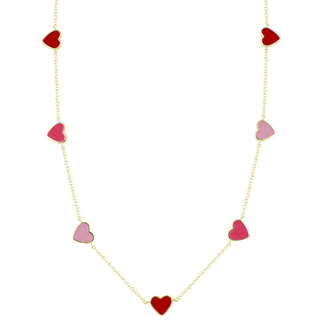 Cadenita en plata con baño de oro con corazones de esmalte.