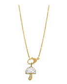 Cadena con charm de honguito esmaltado en plata con baño de oro y zirconia.