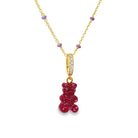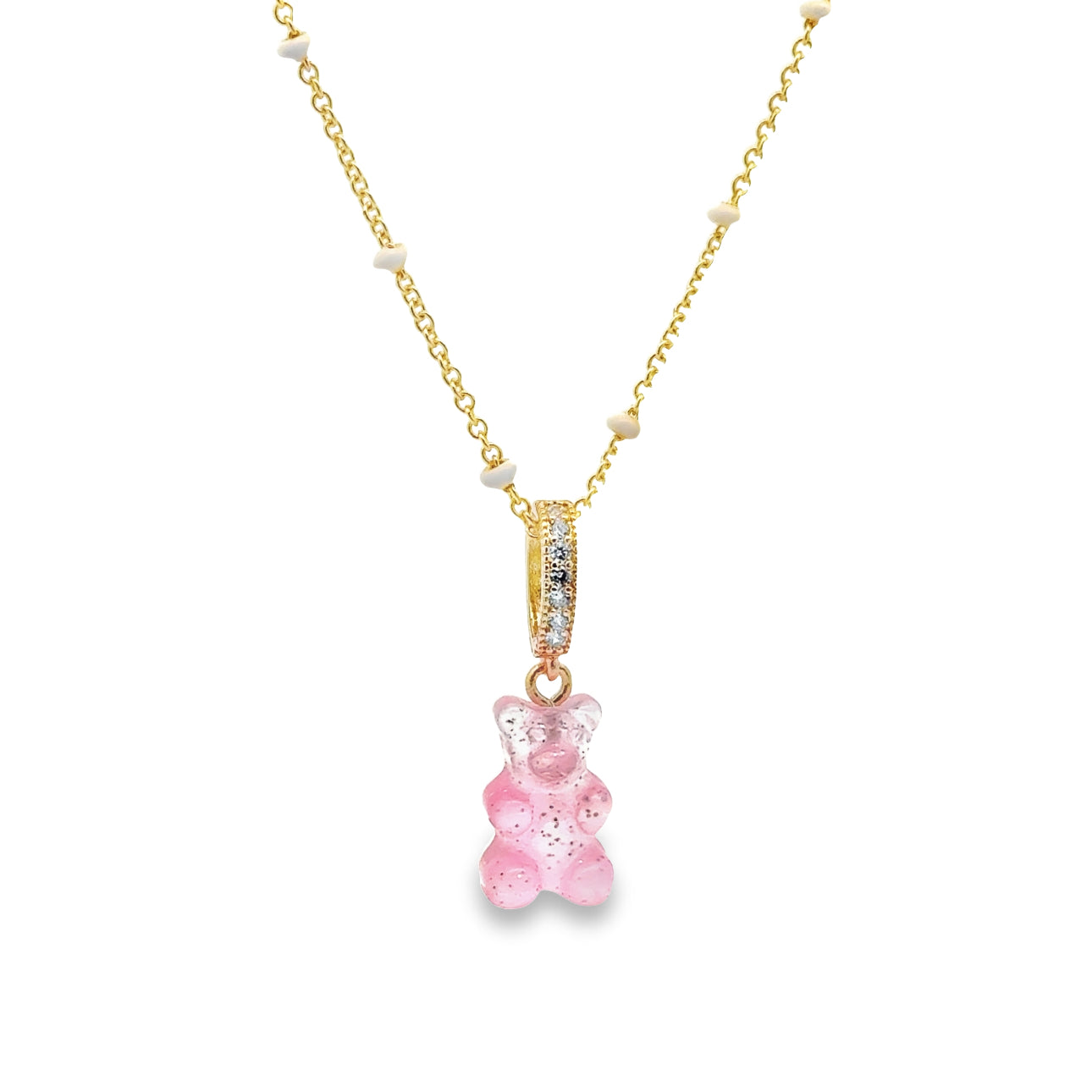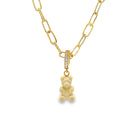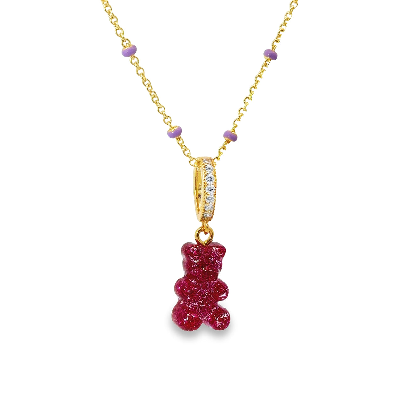Collar con charm de osito con cadena en plata con baño de oro y esmalte.