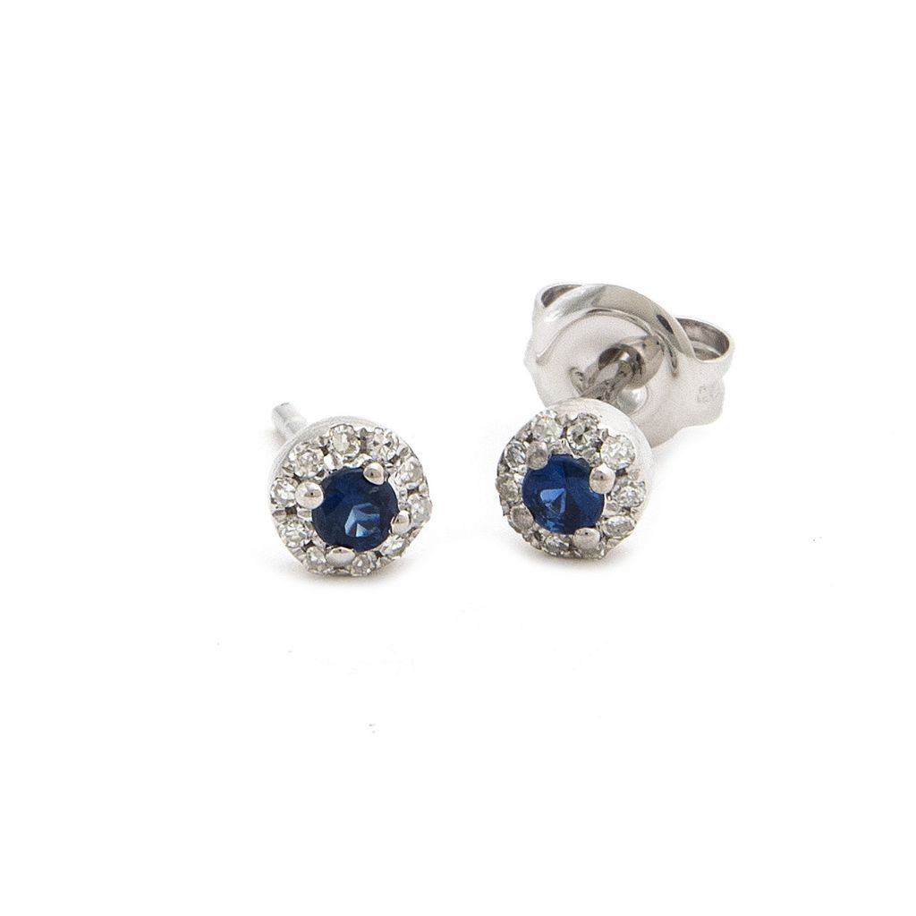 Studs en oro blanco de 14k con zafiro y diamantes.