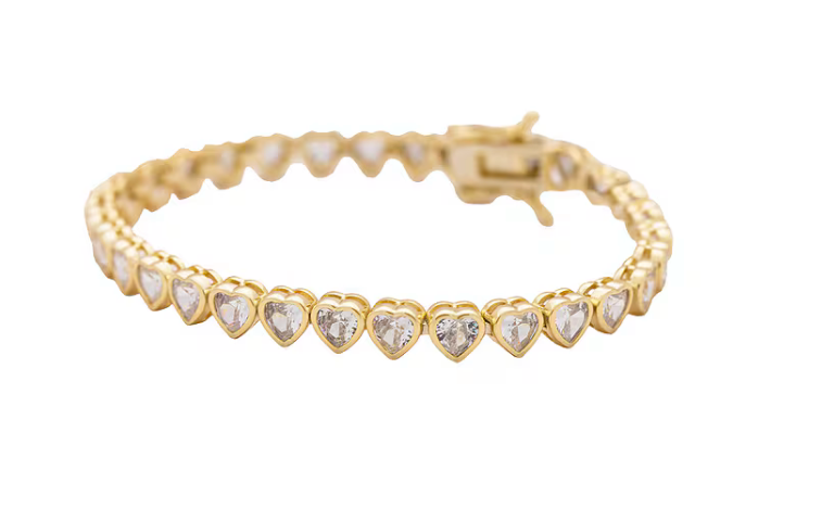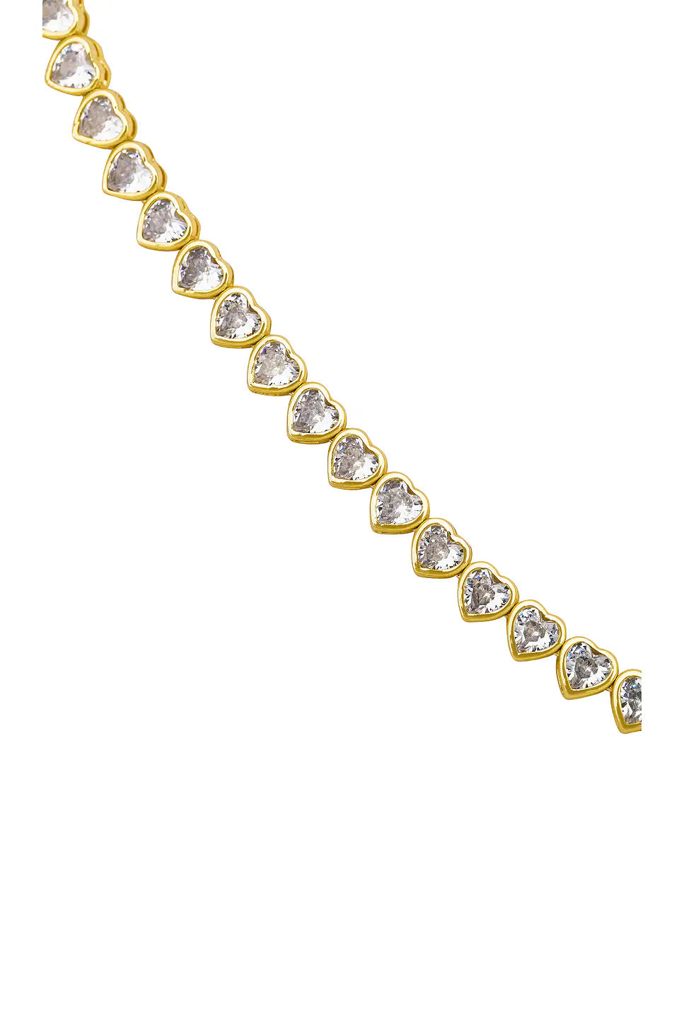 Pulsera tenis de corazón en chapa de oro con zirconia.