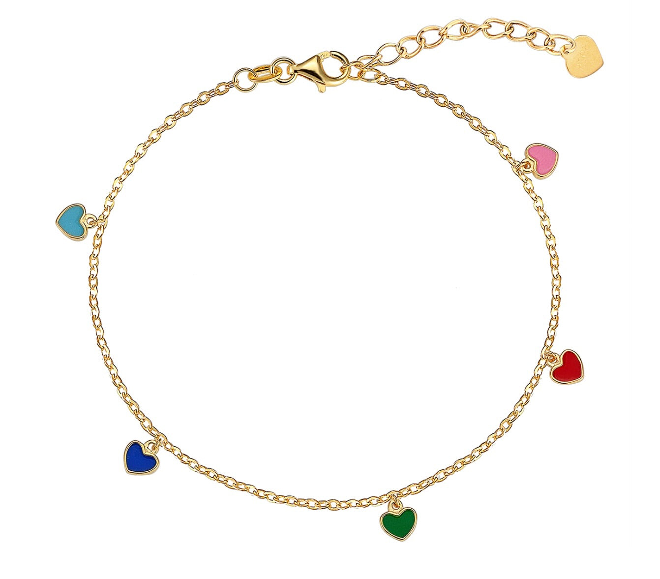 Pulsera en plata con baño de oro y corazones de esmalte.