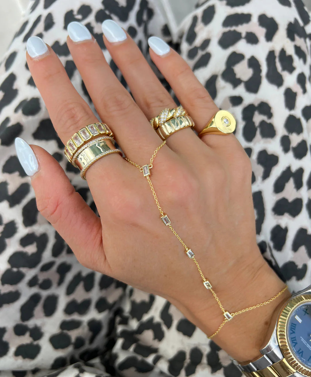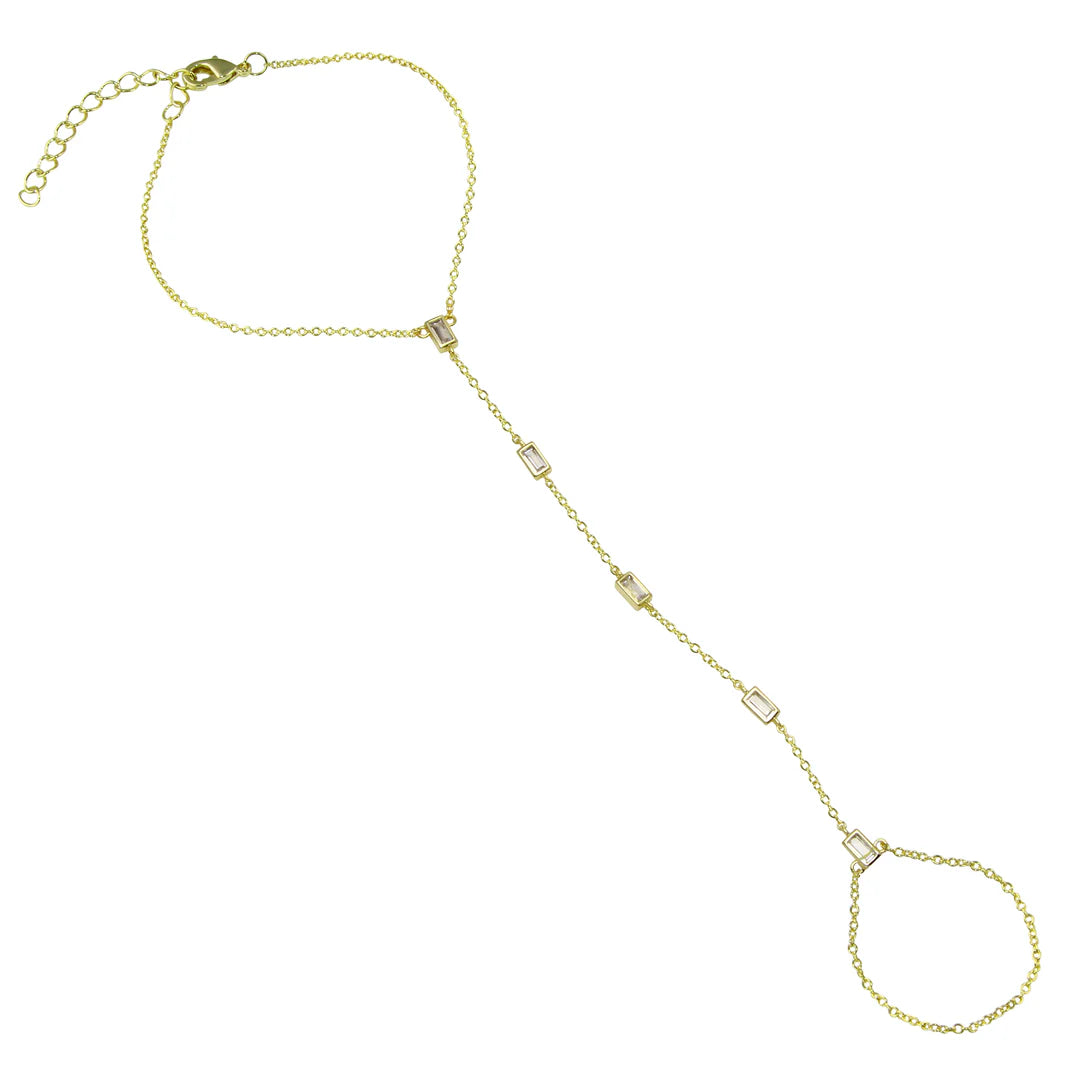 Pulsera con anillo de cadena en plata con baño de oro y zirconia.