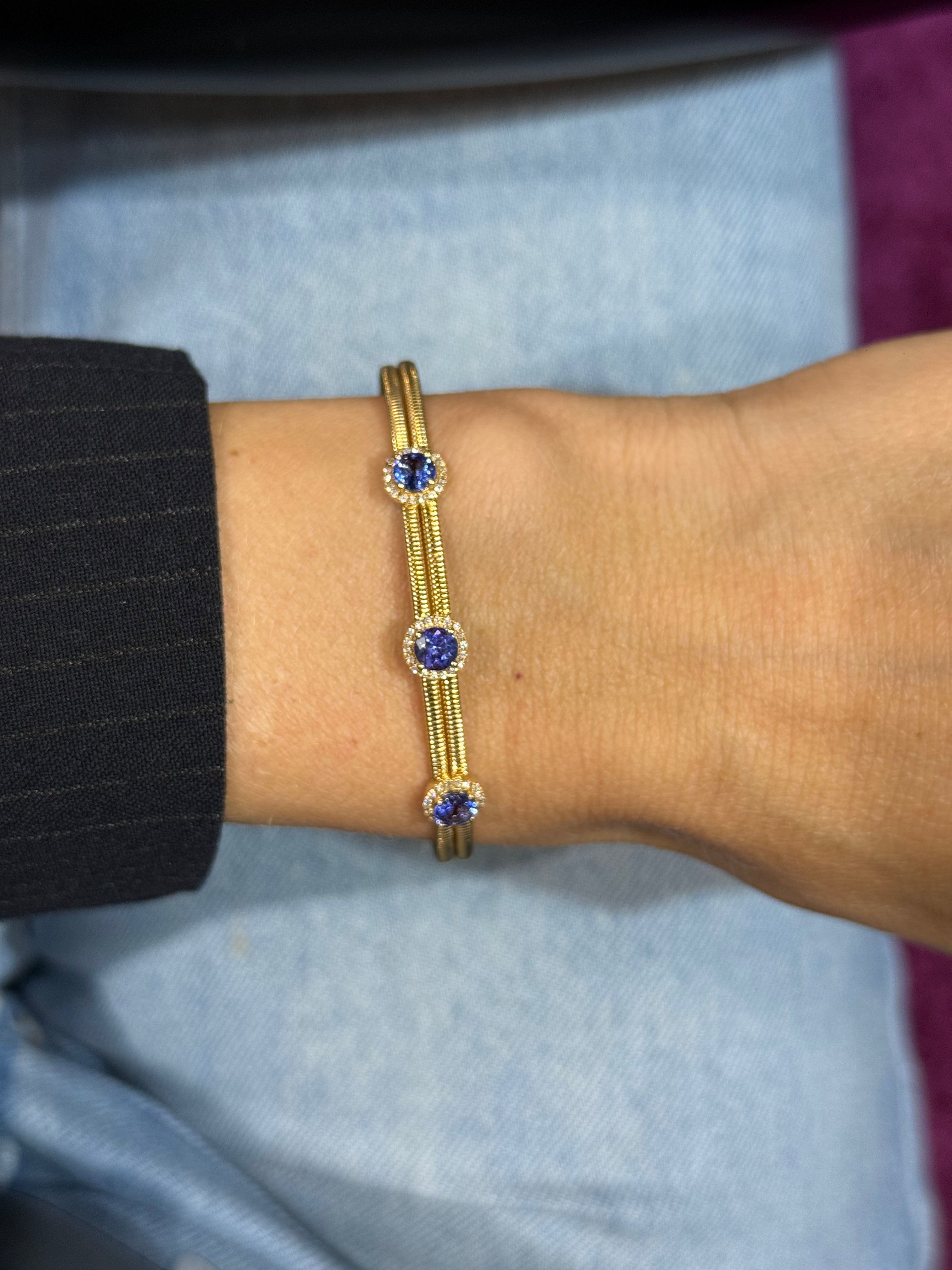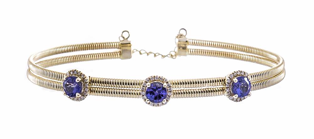 Pulsera bangle en oro amarillo 14k con 1.27ct de tanzanita y .16ct de diamantes.