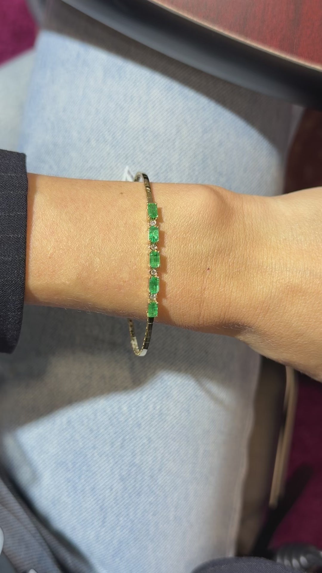 Pulsera bangle en oro amarillo 14k con 1.55ct de esmeralda y .09ct de diamantes.