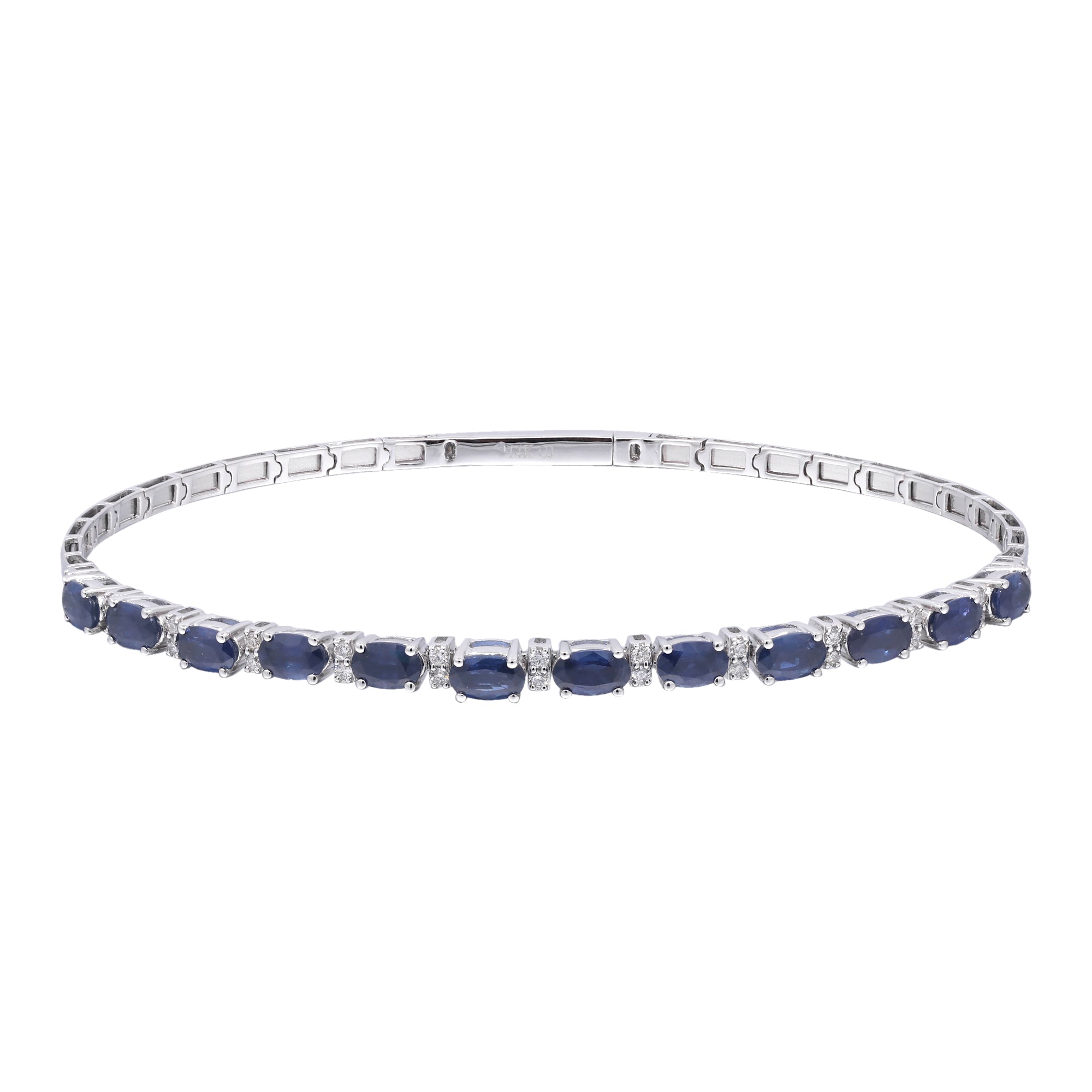 Pulsera bangle en oro blanco 14k con 3.47ct de zafiro y .25ct de diamantes.