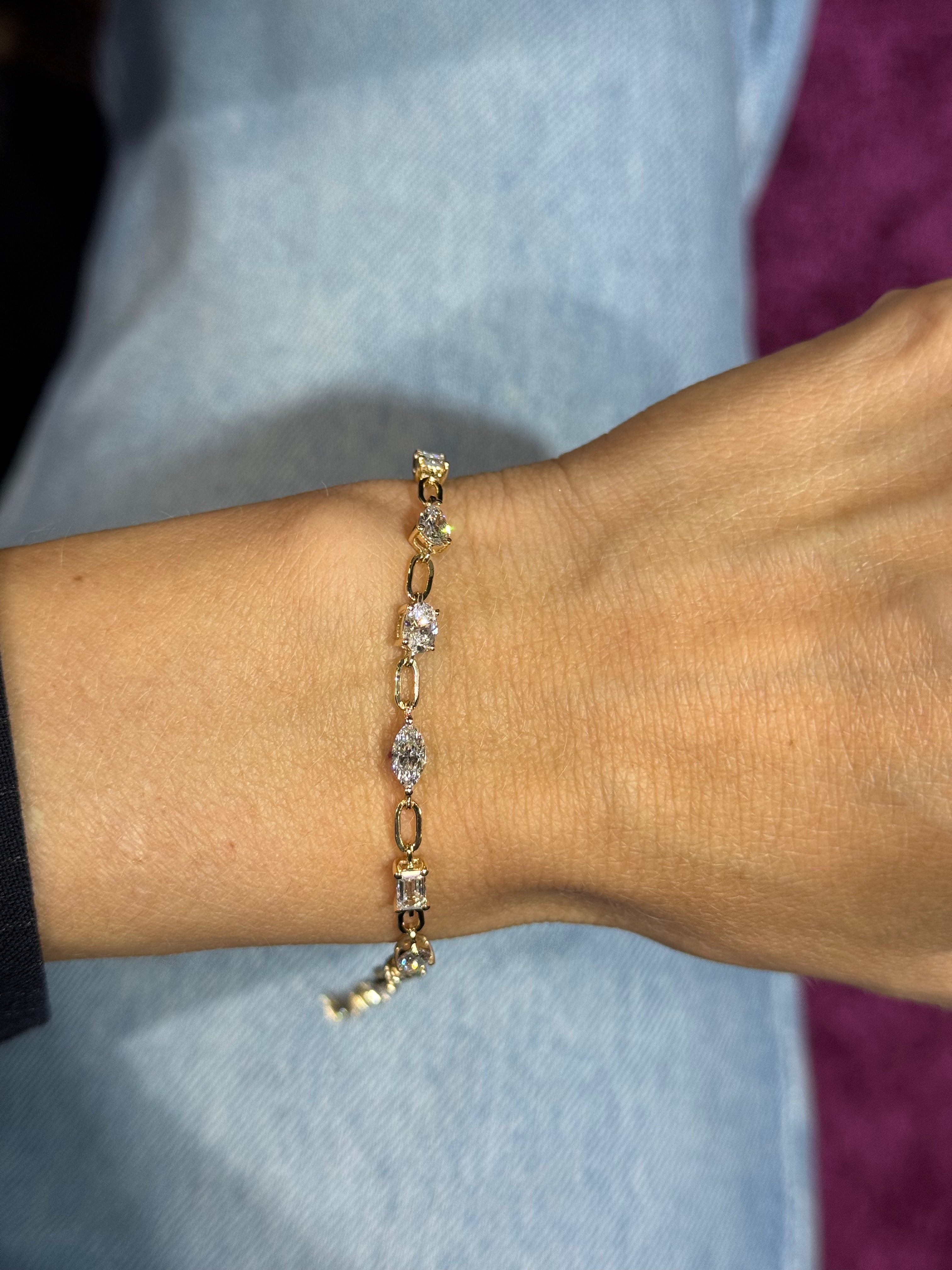 Pulsera en oro amarillo 14k con 3.75ct de diamantes de lab.