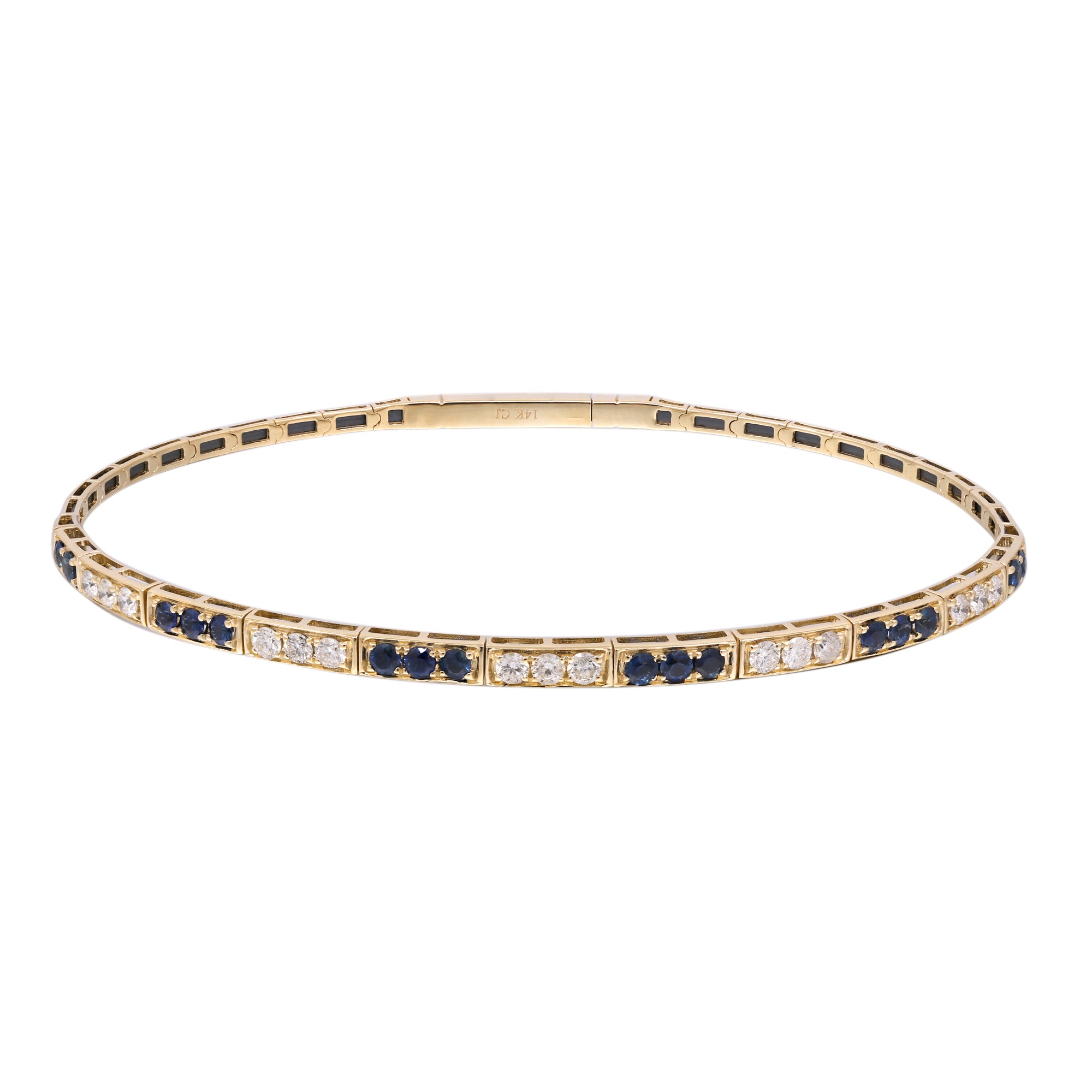 Pulsera bangle en oro amarillo 14k con .57ct de zafiro y .50ct de diamantes.