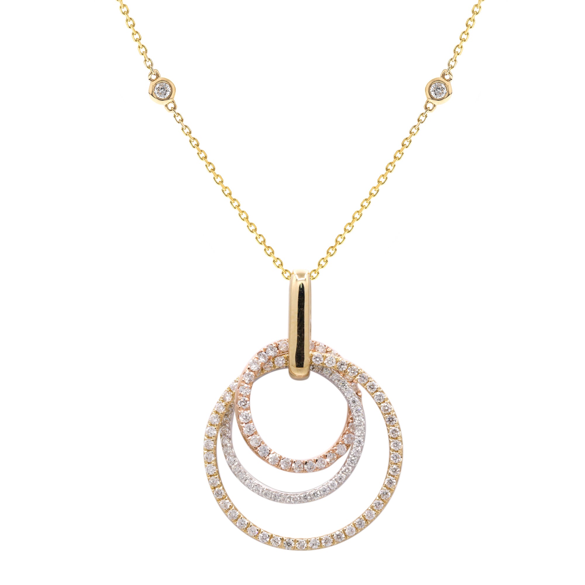 Cadena con dije tres oros 14k con .71ct de diamantes.