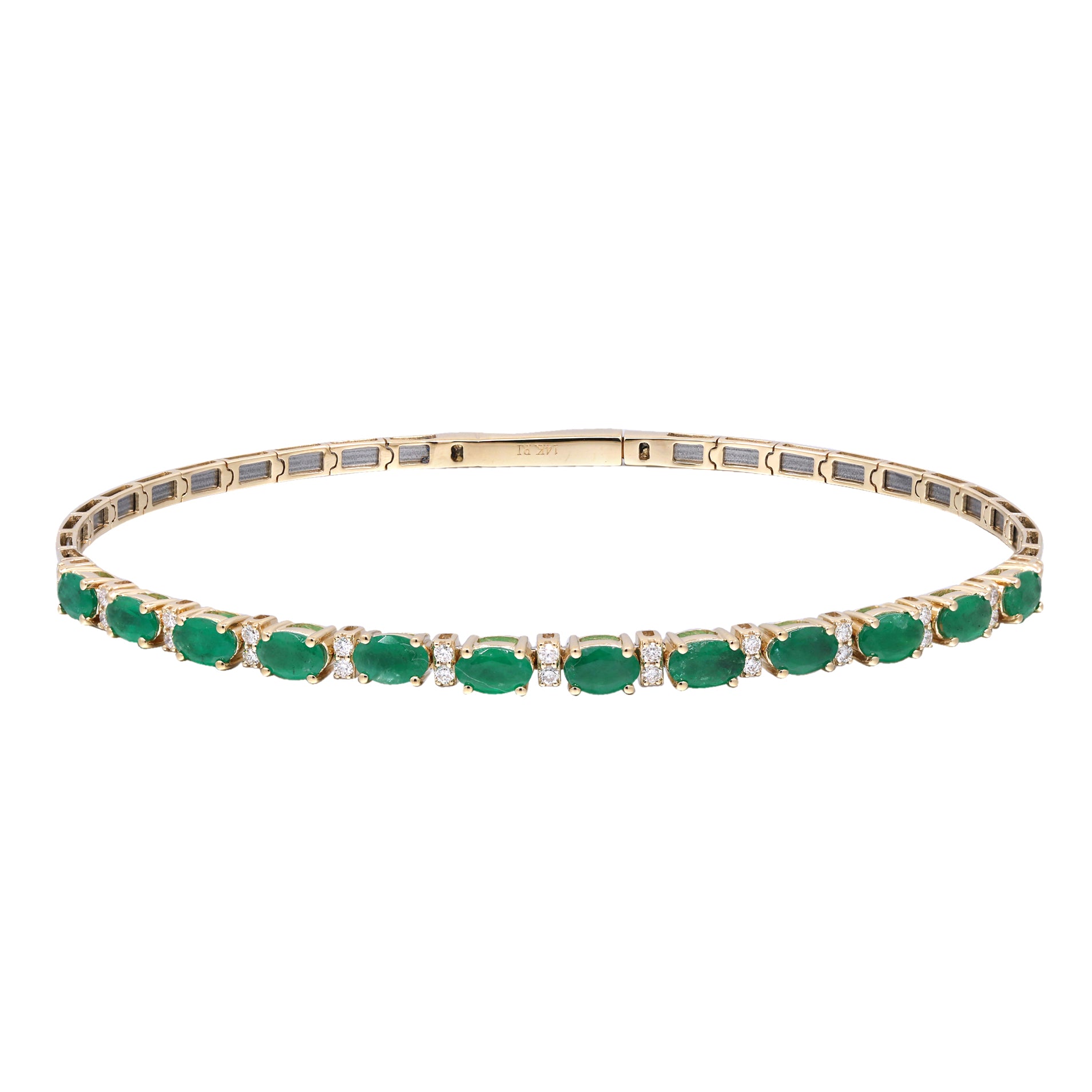 Pulsera bangle en oro amarillo 14k con 2.70ct de esmeraldas y .25ct de diamantes.