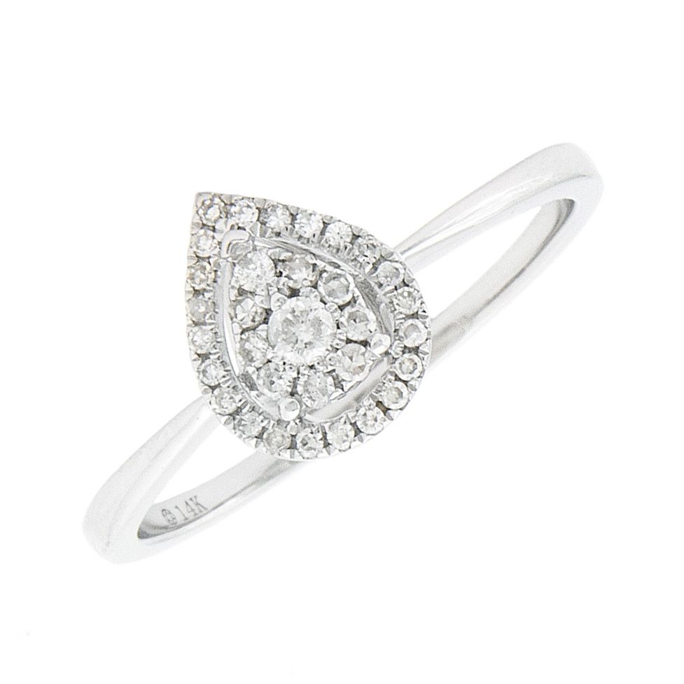 Anillo de gota en oro blanco 14k con .18ct de diamantes.