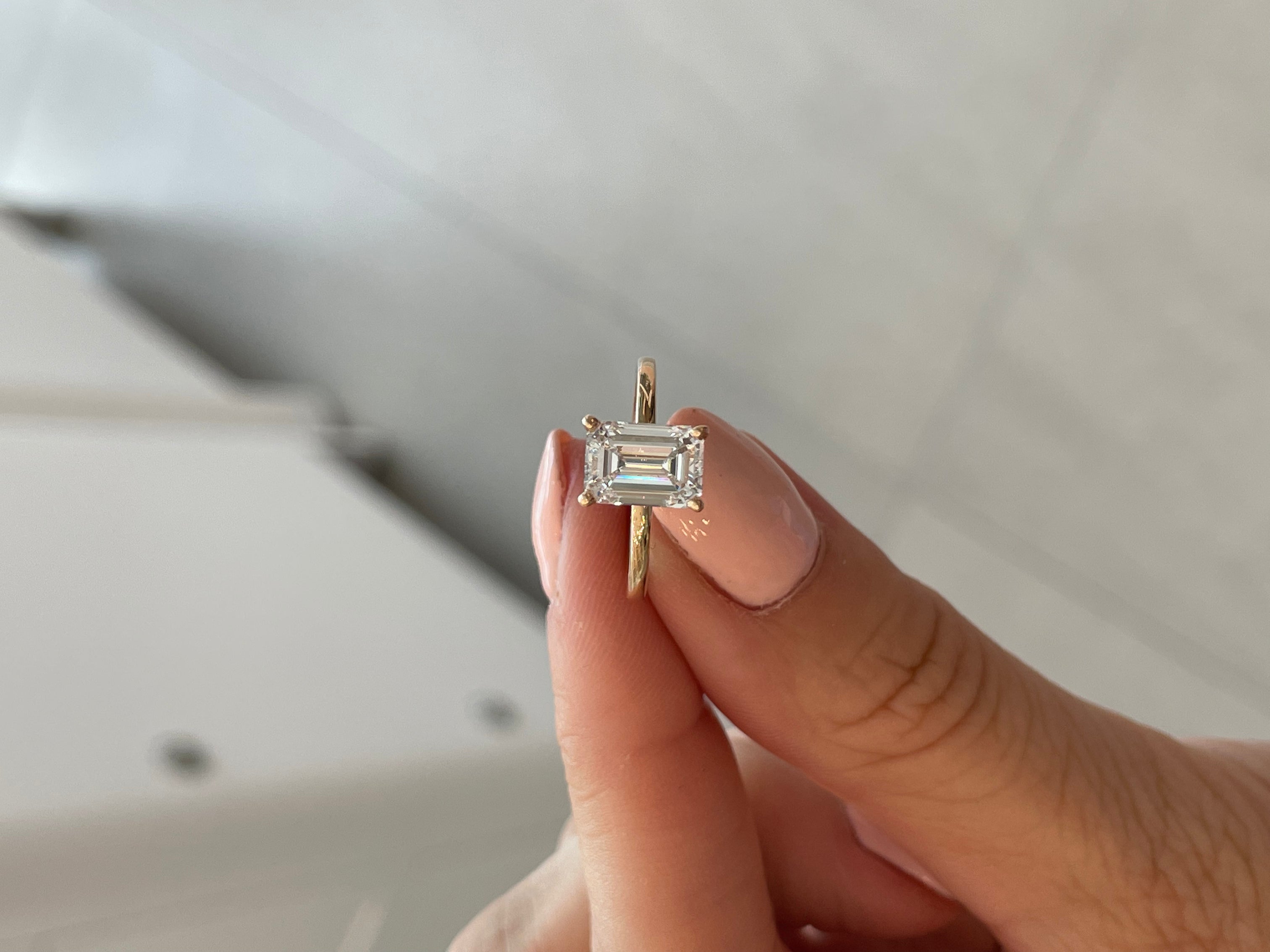 Anillo solitario 1.2mm oro amarillo 14k con brillante emerald cut 1.55ct