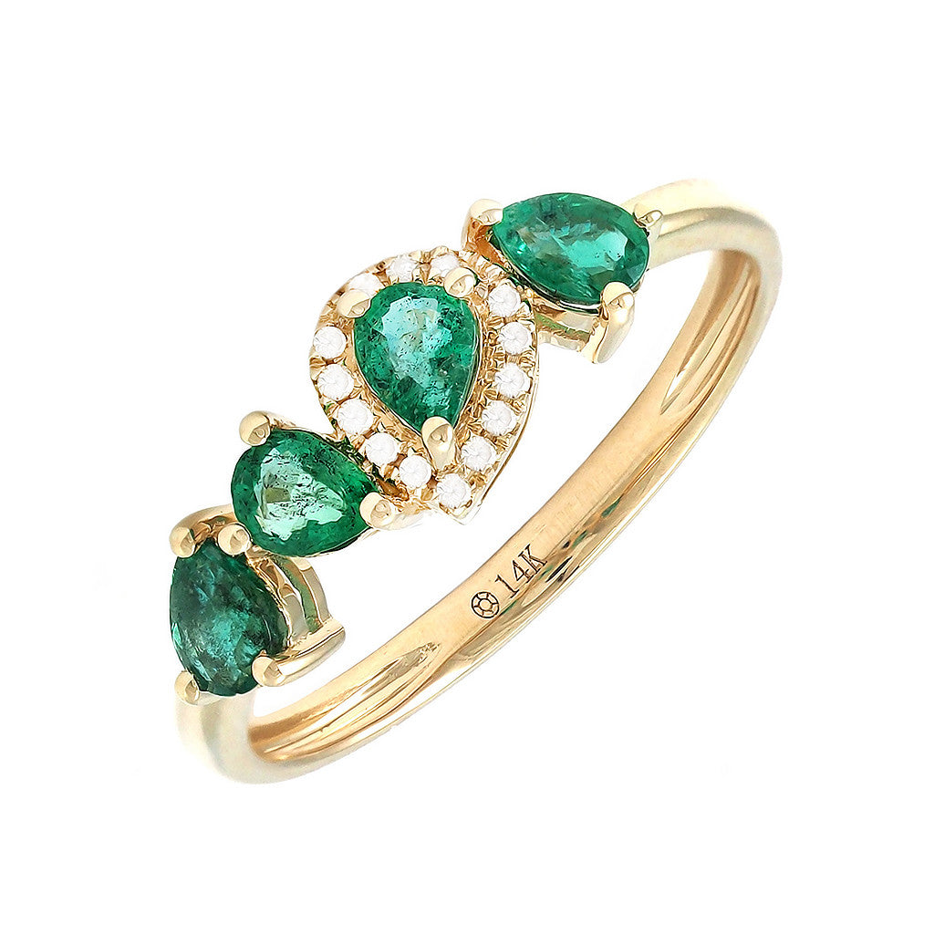 Anillo en oro amarillo 14k con 0.04ct de diamante y 0.60ct de esmeralda.