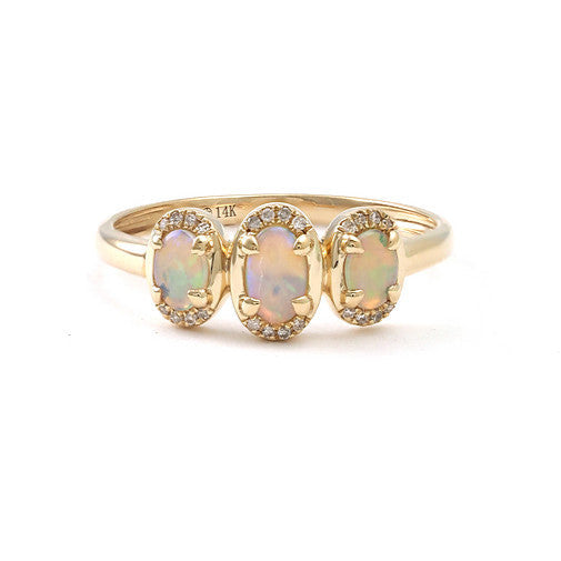 Anillo en oro amarillo 14k con .06ct de diamantes y .27ct de ópalo.
