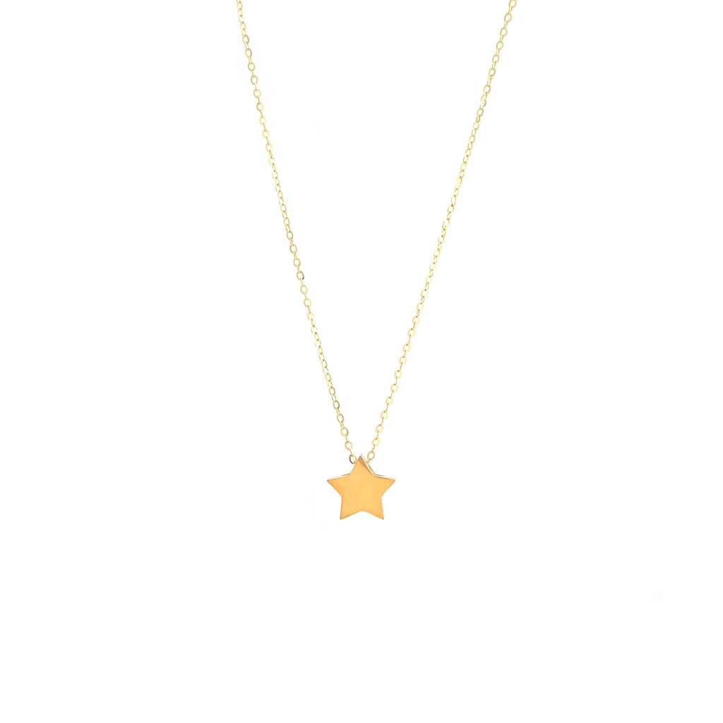 Collar de estrella mini en oro amarillo 14k con cadena.