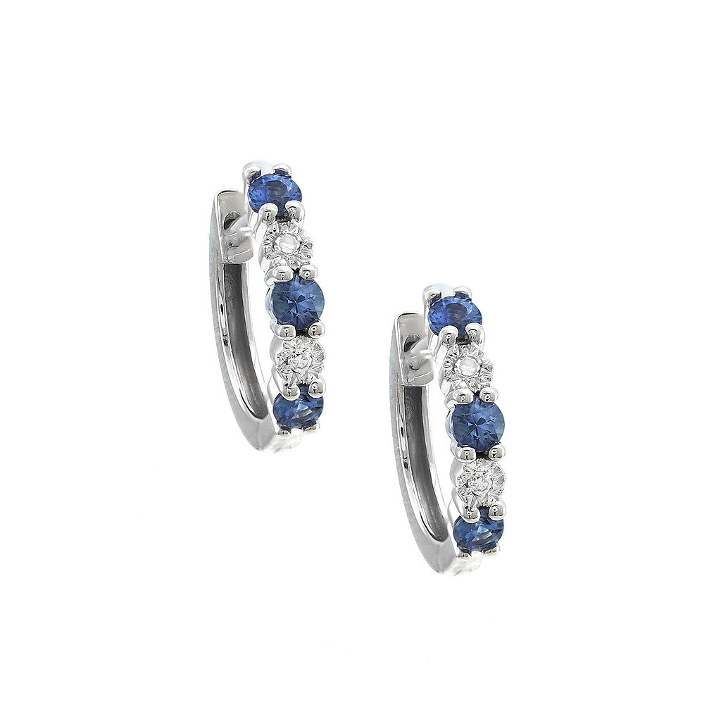 Huggies en oro blanco 14k con .03ct de diamantes y .36ct de zafiros.