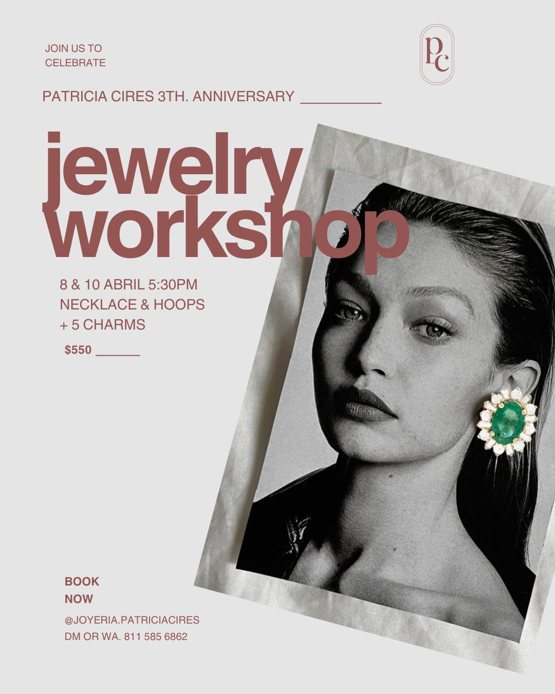 Taller de joyeria en Patricia Cires. 8 & 10 de abril 5:30pm.
