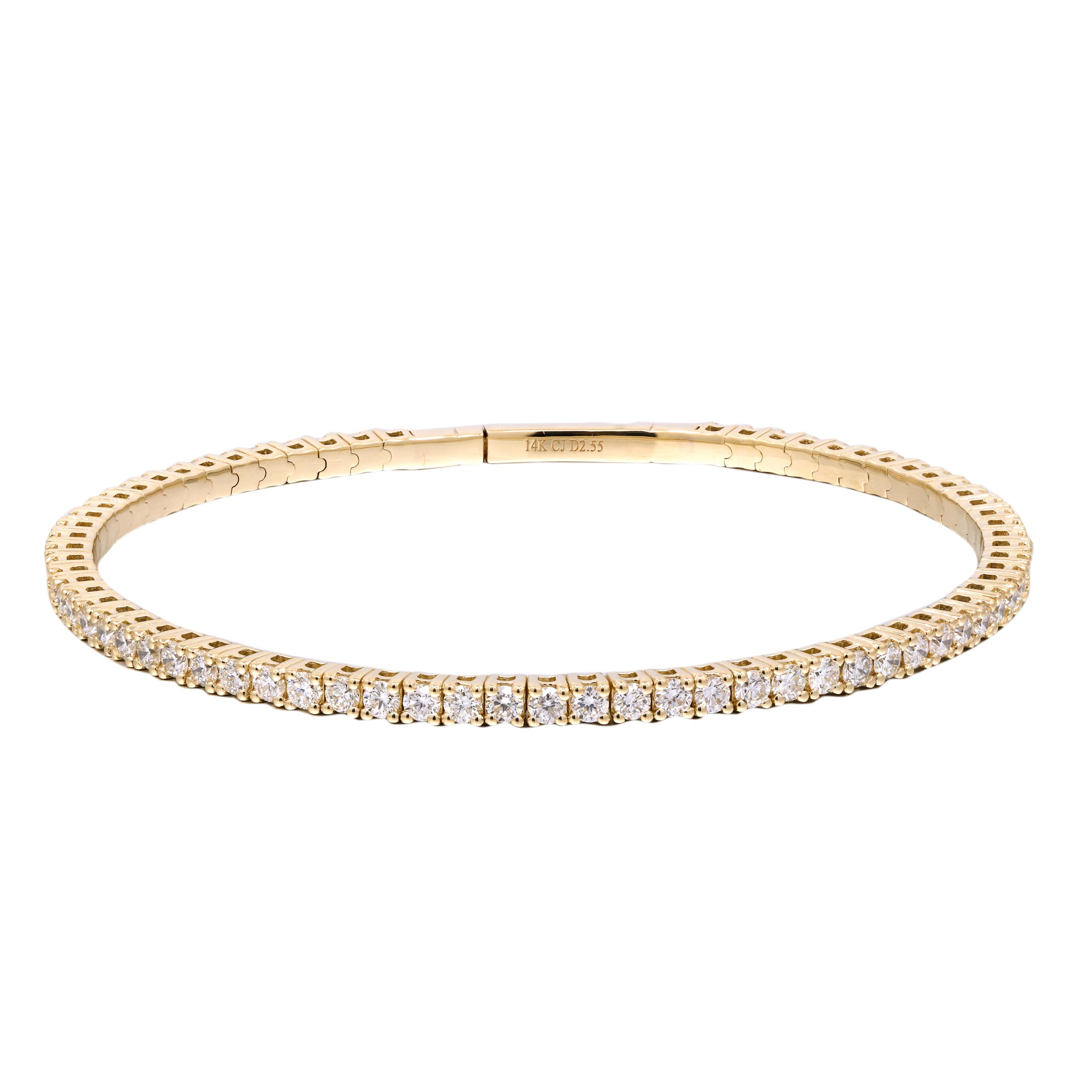 Pulsera bangle tennis completa en oro amarillo 14k con 2.55ct de diamantes.