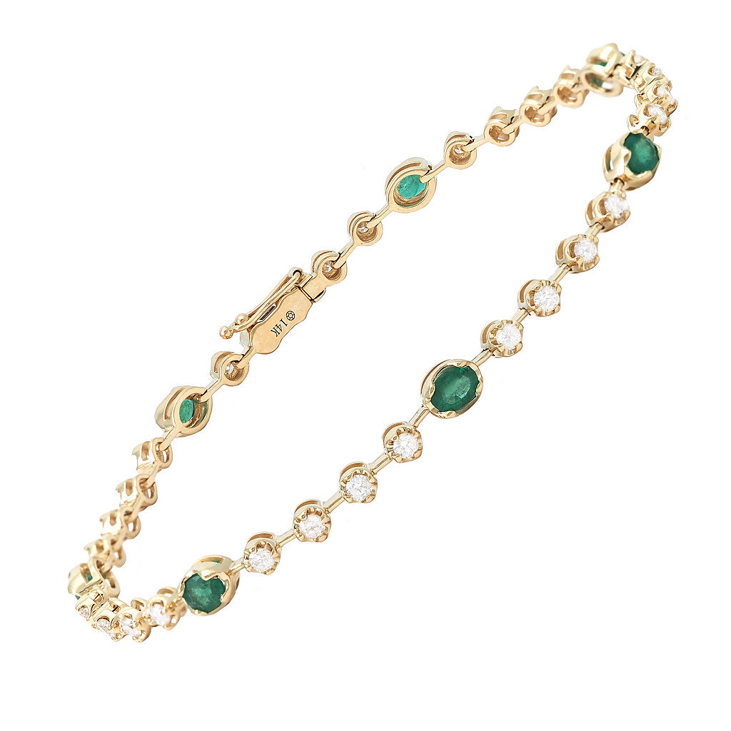 Pulsera en oro amarillo 14k con 1ct de diamantes y 1.14ct de esmeraldas.